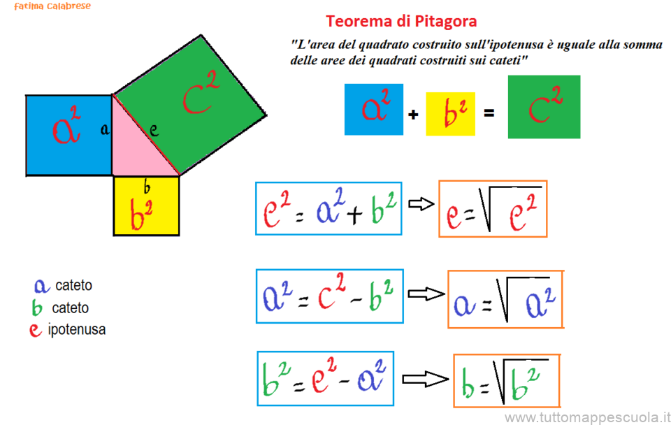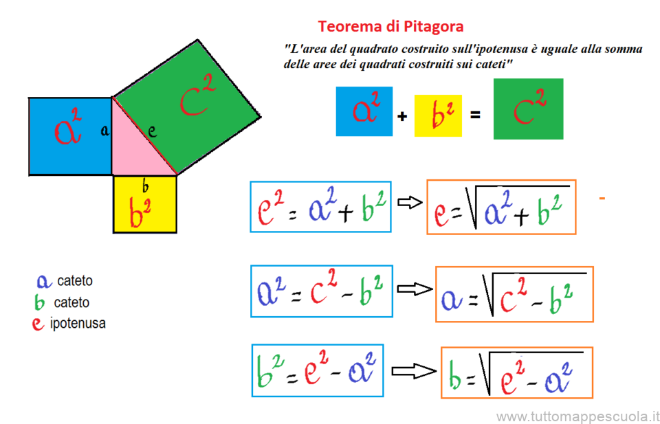 Due schemi riassuntivi e molto intuitivi per capire il Teorema di Pitagora.